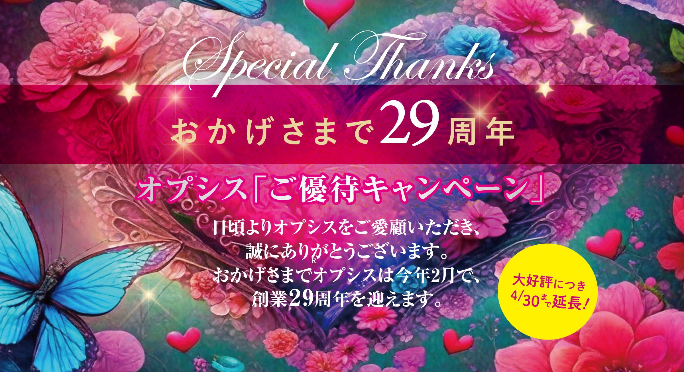 大好評につき4月30日まで延長!29周年ご優待キャンペーン